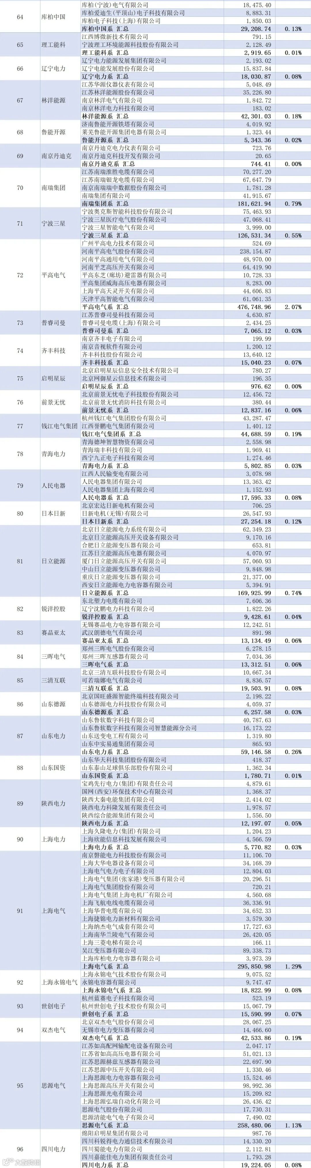 中国西电系有15家企业中标,合计中标金额约60.96亿元,占比约2.7%