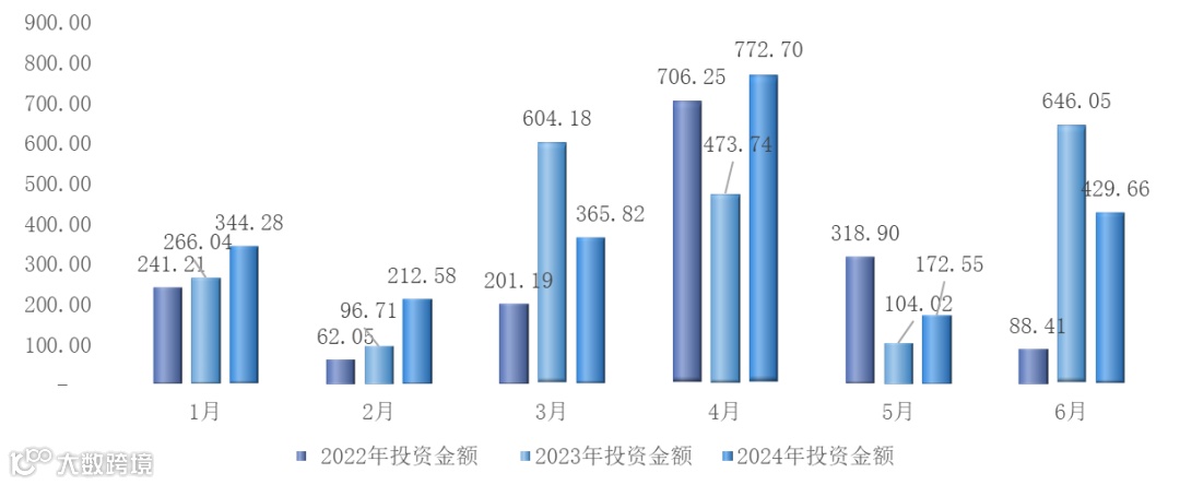 从1~6月份期间每个月的投资金额来看,近三年1~6月份投资金额持续保持增长,2024年度同期同比增长约5%。
