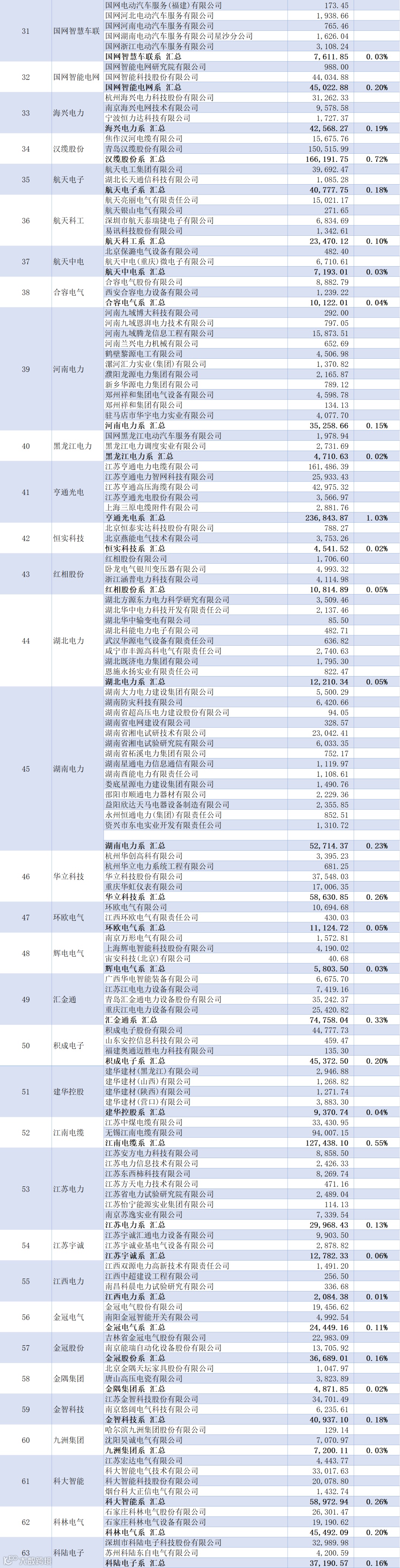 湖南电力系有14家企业中标,合计中标金额约5.27亿元,占比约0.2%
