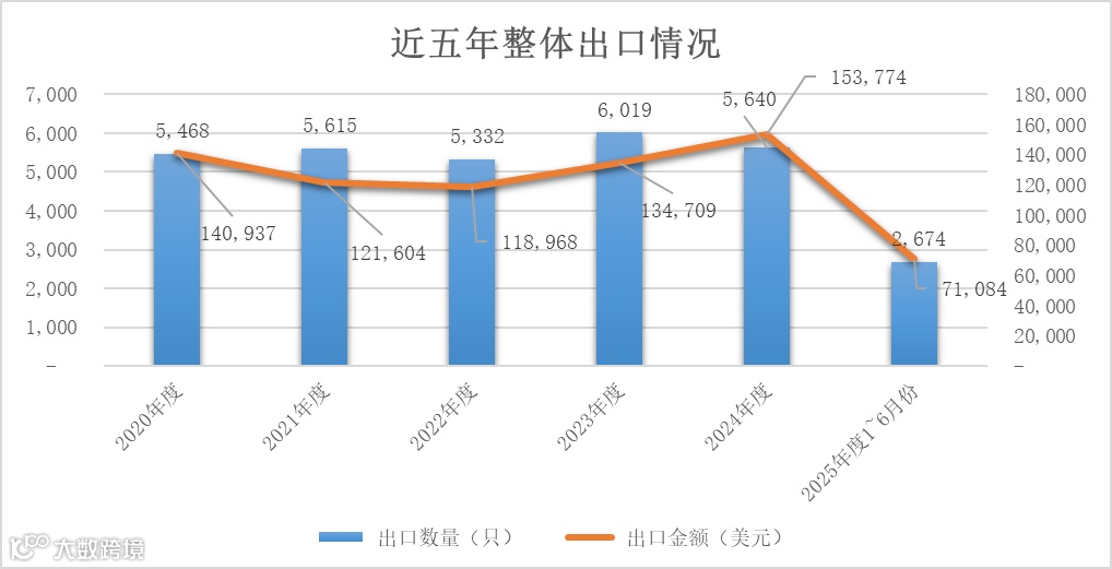 2025年1~6月份期间,北美洲出口金额最多的市场是巴拿马(约367万美元);大洋洲出口金额最多的市场是澳大利亚(约1755万美元);非洲出口金额最多的市场是尼日利亚(约3911万美元);南美洲出口金额最多的市场是哥伦比亚(约912万美元);欧洲出口金额最多的市场是英国(约3661万美元);亚洲出口金额最多的市场是巴基斯坦(约3745万美元)。