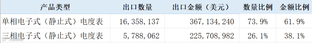 2025年1~6月份期间,单相表出口量比例占74.3%,三相表出口量比例占25.7%;单相表出口金额比例占61.9%,三相表出口金额比例38.1%。