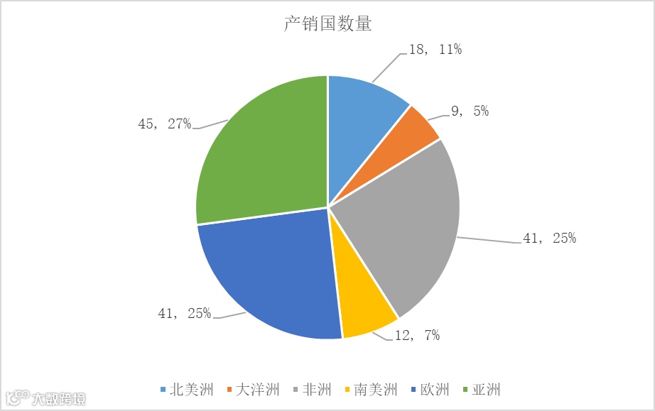 出口金额超过500万美元的高价值市场共有43个,合计出口金额约5.98亿美元。