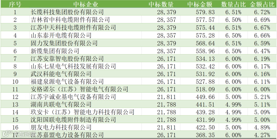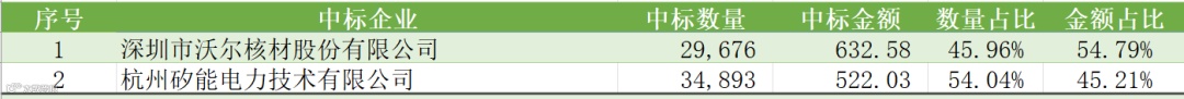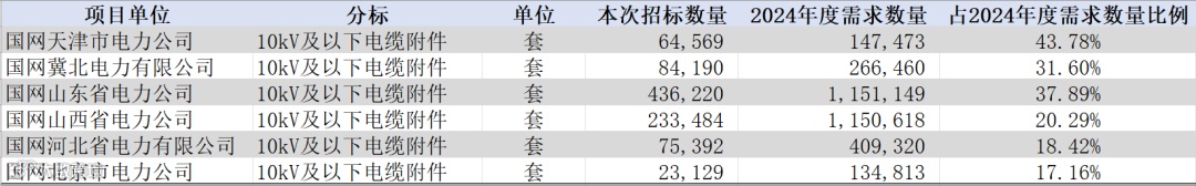 具体到各项目单位的中标情况,天津项目共有2家企业中标,冀北项目共有2家企业中标,山东项目共有17家企业中标、山西项目共有3家企业中标,河北项目共有3家企业中标,北京项目共有1家企业中标。