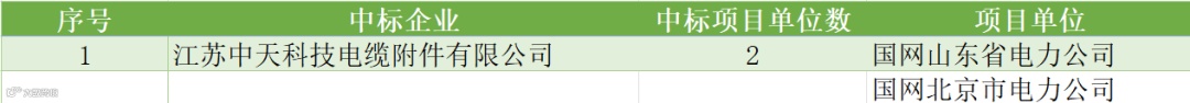 2家近五年未在国网范围中标10kV及以下电缆附件产品的企业实现中标: