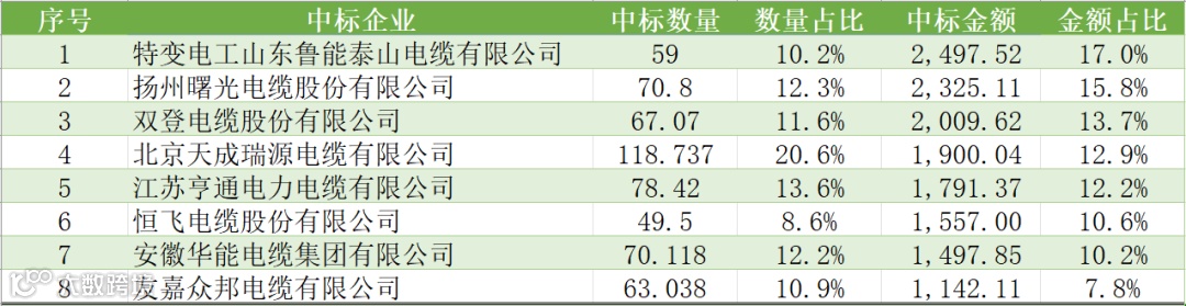 低压电力电缆部分,本次项目中标的8家企业,在2024年度总中标金额排名最低的为第263名,其中4家企业在2024年度总中标金额排名在前50名以内。