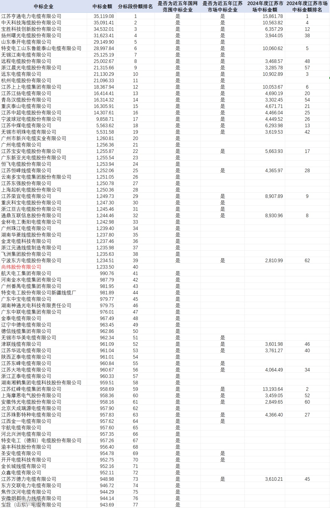 本项目77家中标企业有76家为近五年国网范围相同物资中标企业,同时39家为近五年江苏市场相同物资中标企业,但其中48家企业2024年度没有在江苏市场相同物资中标。