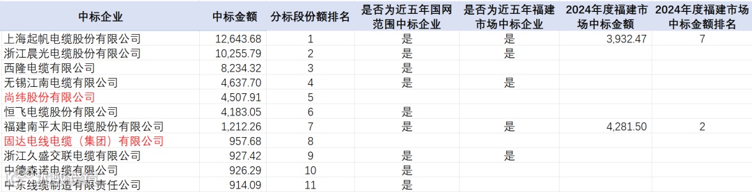 分析市场能力变化,2024年度中标企业中1家企业本次项目中标金额排名高于或与2024年度接近;2家近五年未在国网范围中过标的企业实现中标。详情如下:
