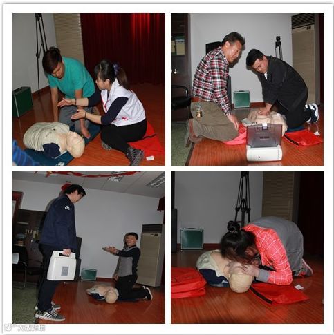 整个培训活动分为急救知识讲座和实践操作两个部分。培训现场杨老师通过影像资料,生动的案例给大家讲解了紧急救护在日常生活中的重要性,接着进行了详细的救护知识讲座,她着重对心肺复苏、气道异物阻塞、止血包扎等进行了细致的讲述,并现场演示了人工呼吸、胸外按压、自动体外心脏除颤器、成人及婴儿气道异物阻塞急救法、创伤现场救护等的使用方法操作演练。