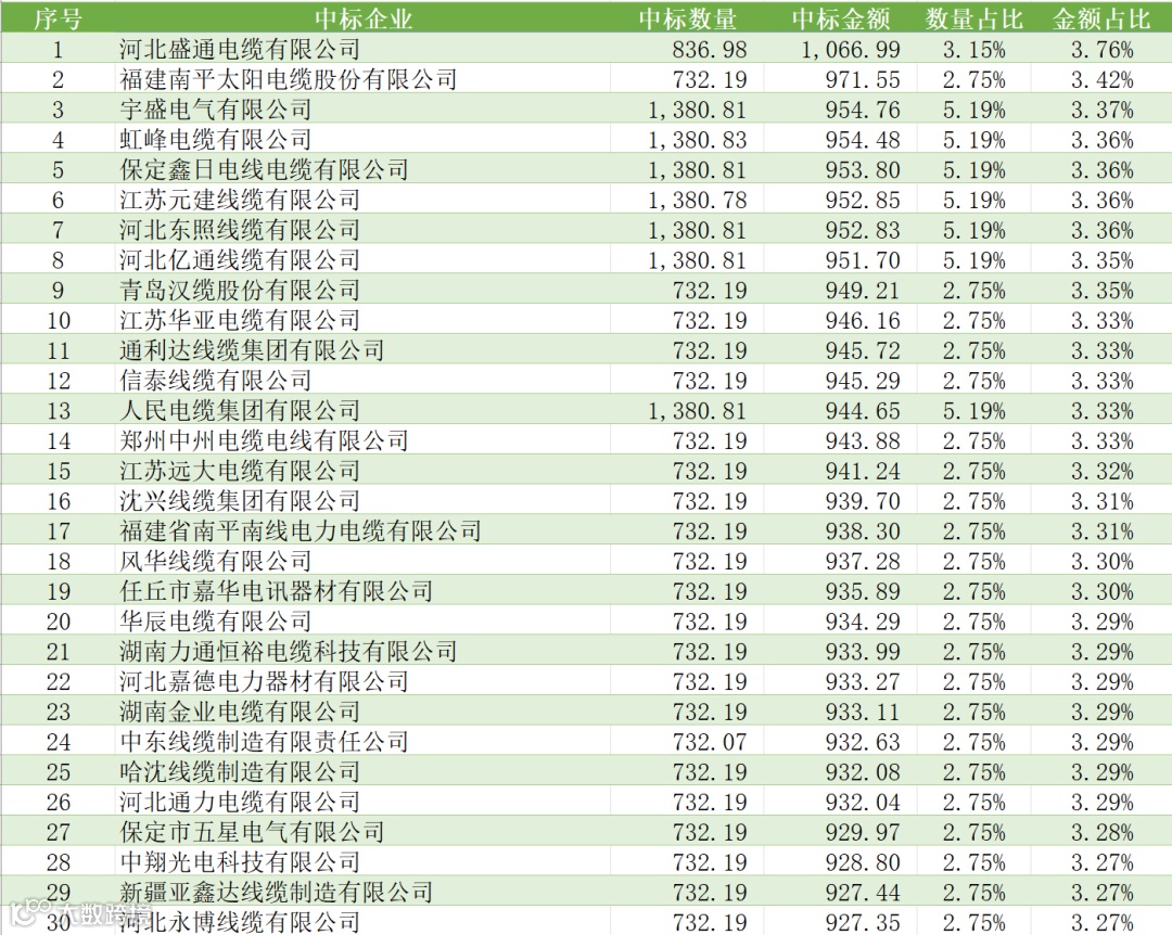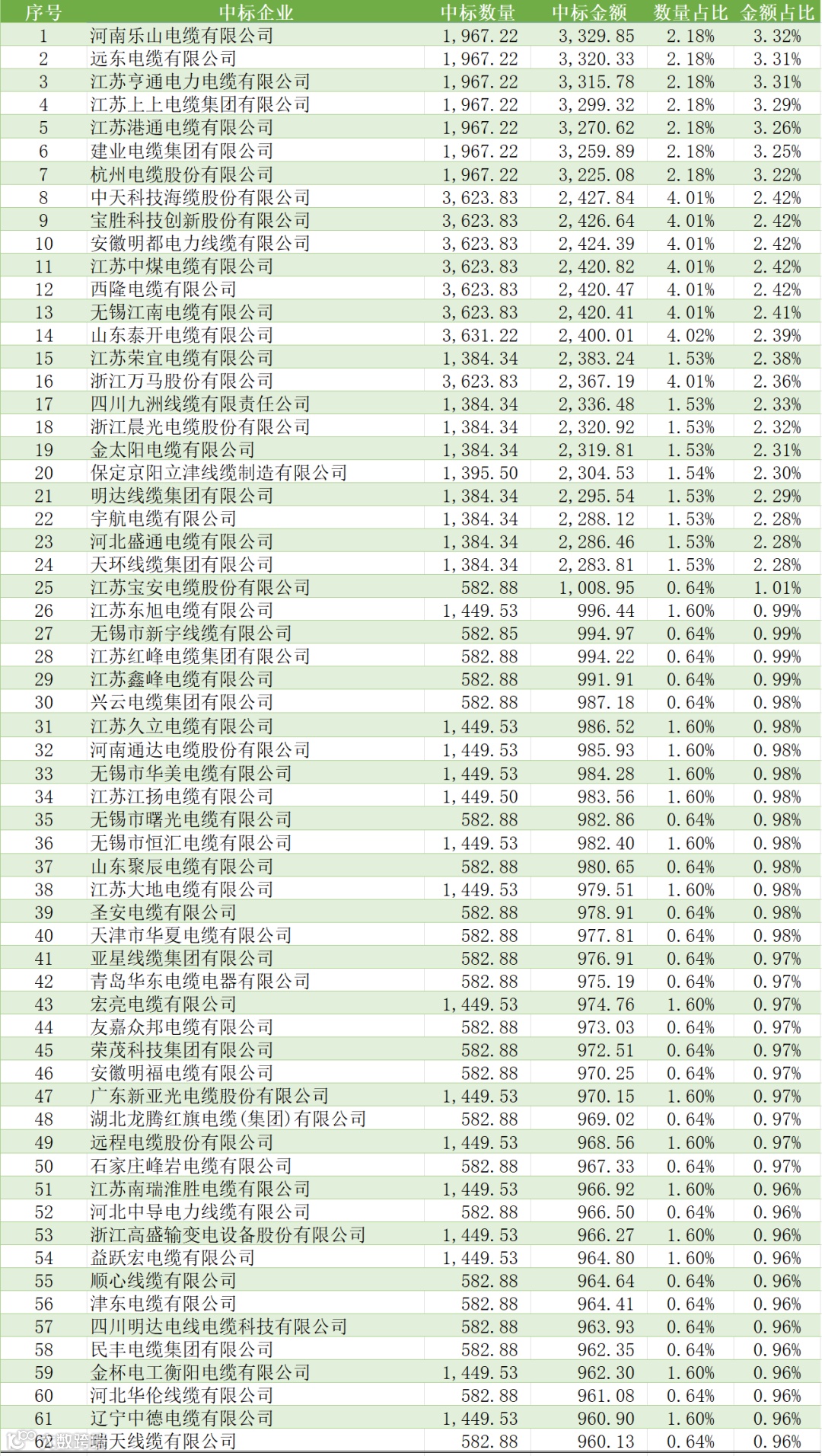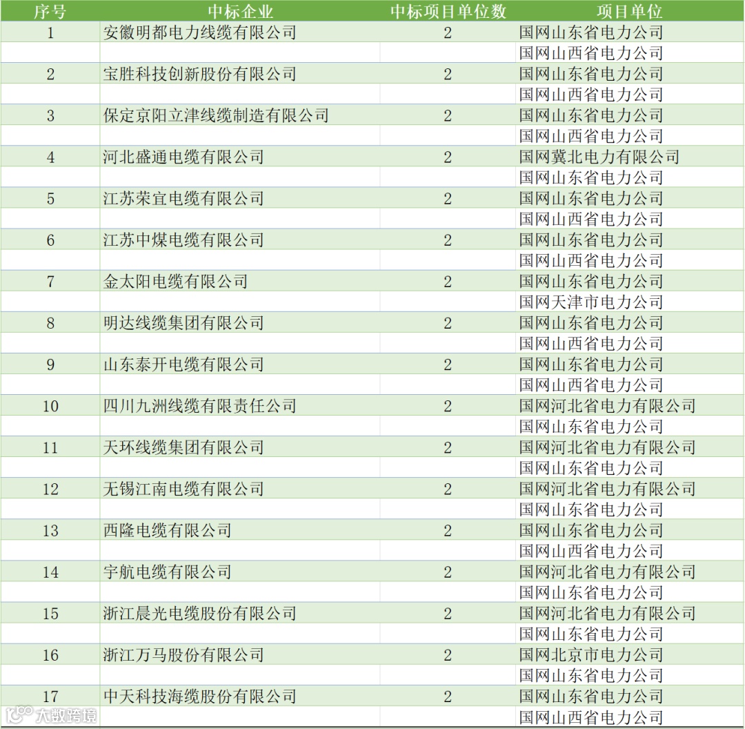 具体到各项目单位的中标情况,冀北项目共有30家企业中标,北京项目共有5家企业中标,山东项目共有62家企业中标,山西项目共有20家企业中标,天津项目共有2家企业中标,河北项目共有35家企业中标。