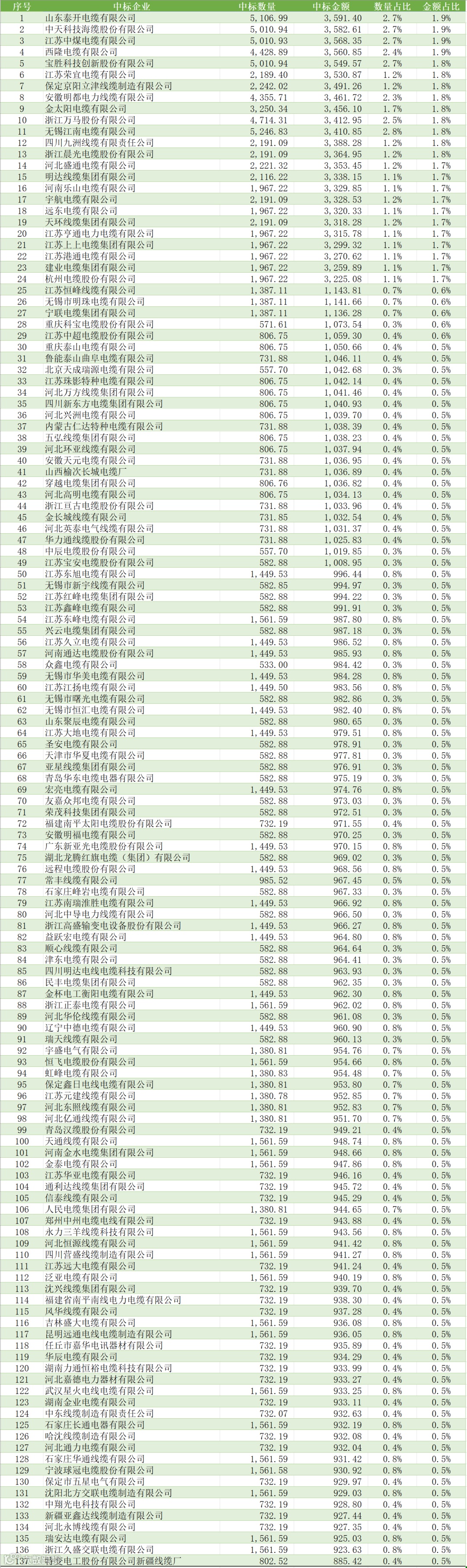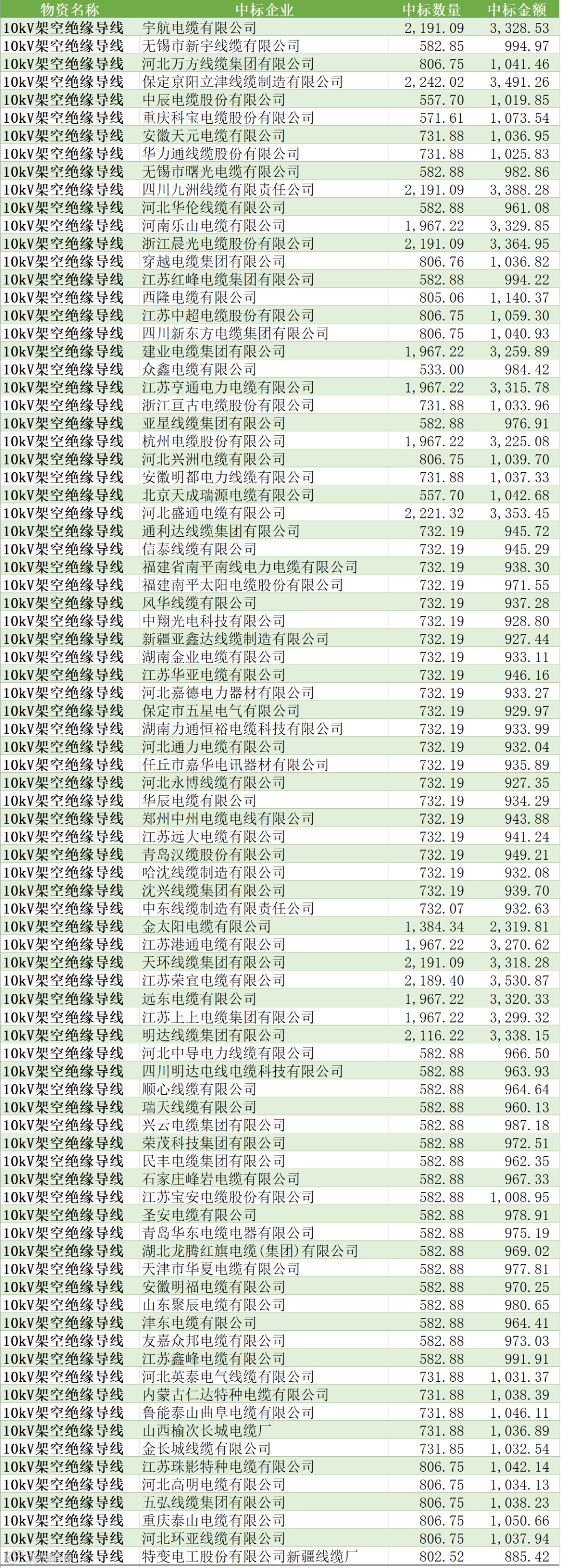 4家近五年未在国网范围中标架空绝缘导线产品的企业实现中标: