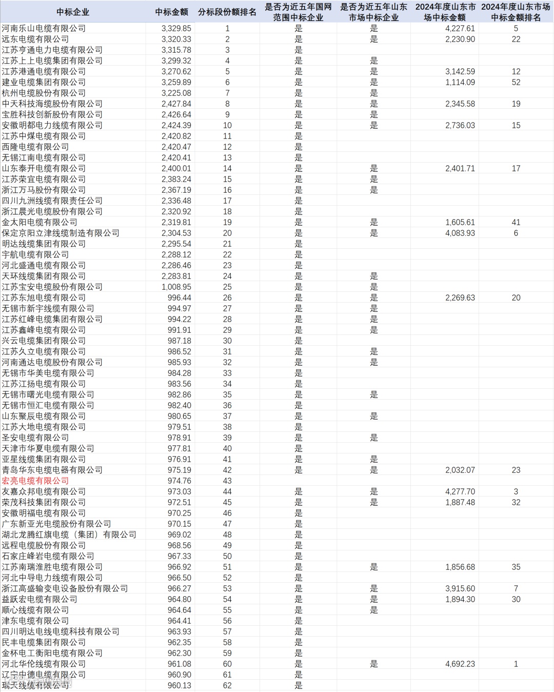 本次项目中标的137家企业,在2024年度总中标金额排名最低的为241名,其中46家企业在2024年度总中标金额排名在前50名以内。