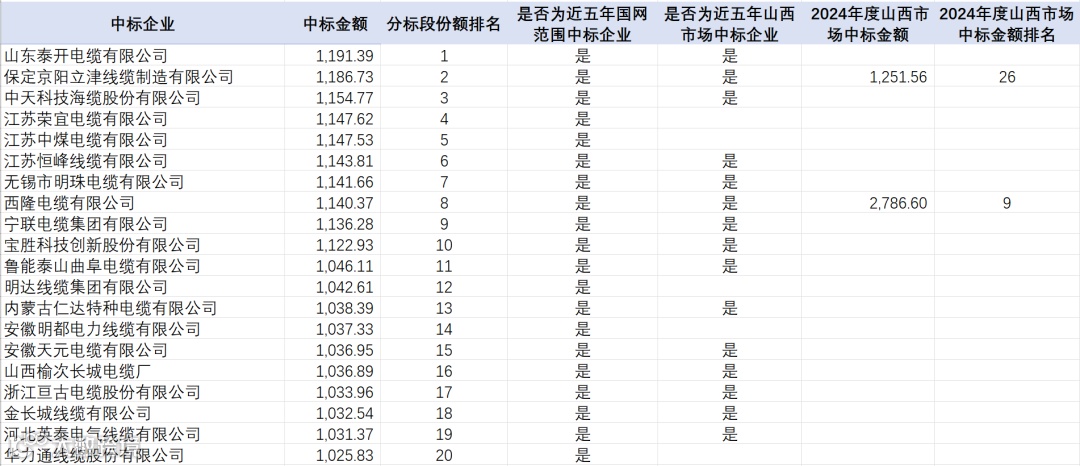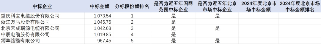 分析市场能力变化,2024年度中标企业中2家企业本次项目中标金额排名高于或与2024年度接近;0家近五年未在国网范围中过标的企业实现中标。详情如下: