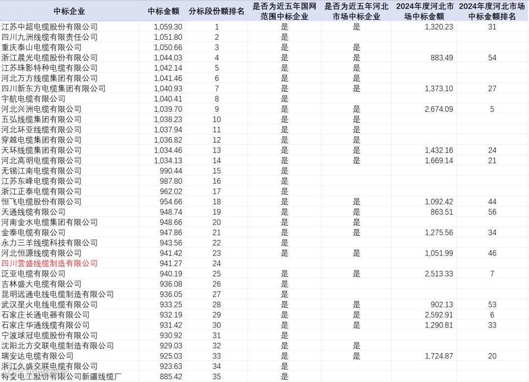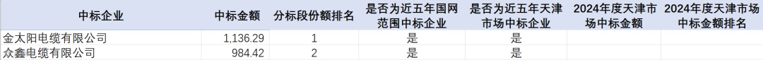 分析市场能力变化,2024年度中标企业中2家企业本次项目中标金额排名高于或与2024年度接近;2家近五年未在国网范围中过标的企业实现中标。详情如下: