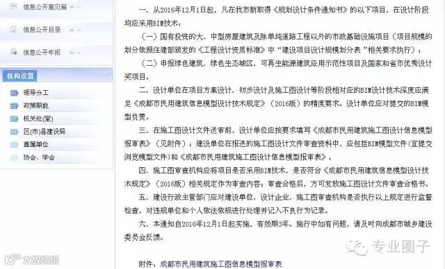 近日,成都市城乡建设委员会下发《关于在成都市开展建筑信息模型(BIM)技术应用的通知》。通知指出,从2016年12月1日起,凡在成都市新取得《规划设计条件通知书》的项目,在设计阶段均应采用BIM技术。