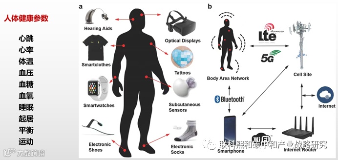第二个例子——人体物联网(图11)。在过去十年来,物联网是数据量暴增的主要驱动力。采集人体信息的技术现在非常成熟,出现了许多人体物联网的产品,比如很多人有智能手表,不仅用来显示时间,也不只是手机的延伸,它还能测量心跳、心率、血氧等。可穿戴设备还可以监测体温,血糖,血压,生活睡眠,甚至身体平衡状态,人体多维度的健康特征都可以实时的、准确的采集下来。目前智能手表大多数还没有联网,如果把这些数据汇集起来,通过人体物联网数据,应用人工智能技术,可以形成全新的医疗诊断,治疗和康复体系。对老人健康状况的监测和预警,就好像给每位老人配备了全职的医疗队。人体物联网普及后,医疗、康复、养老体系都将会有一个根本性的变化。