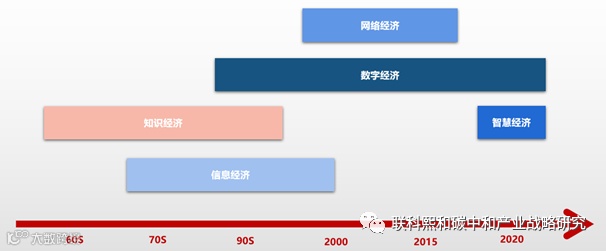 数字经济这个概念由来已久,上世纪90年代就有人提过。过去三十年来,类似的概念,比如图1中的知识经济、网络经济、信息经济都相继出现过。这些类似的词汇都在逐渐淡化,但是数字经济的概念变得越来越清晰,数字经济的重要性被越来越多的人认可。