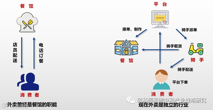 社会分工和商业模式的变化,标志着经济形态的转型。从外卖这个行业来看,因为数字化的转型,出现了一个全新的消费模式,功能比原来更强,服务更好,但是也会出现一些新的模式下产生的问题。