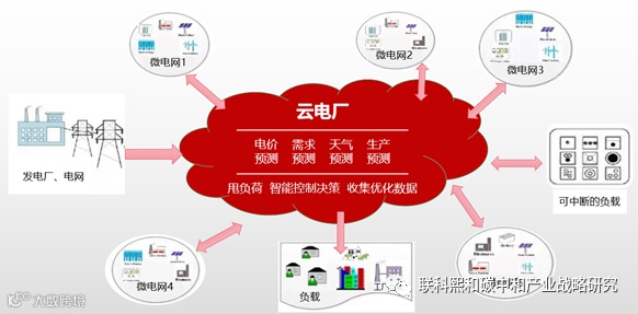 微电网体系成熟后,把众多微电网用互联网技术连接起来,可以组成一个全新的、更灵活的、功能更强的、效率更高的新型电力系统。这种电力系统在业界叫虚拟电厂(图10),或者叫云电厂可能更合适一些,对应云制造、云计算等概念。分布式能源体系成熟后,向云电厂体系发展,信息共享,电力预测,天气预报,市场电价等,也符合技术发展的规律。