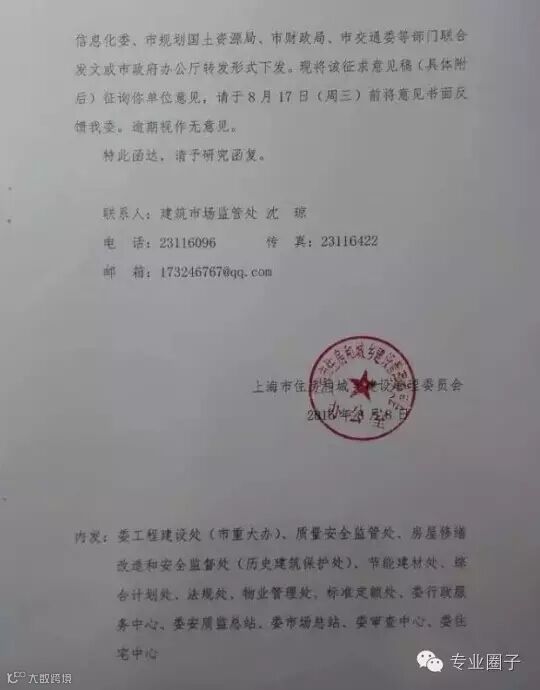 ——该通知拟以市住房城乡建设管理委、市发展改革委、市经济信.10,化委、市规划国土资源局、市财政局、市交通委等部门联合发文或市政府办公厅转发形式下发。后)征询你单位意见,请于8月17情我委。逾期视作无愈见。