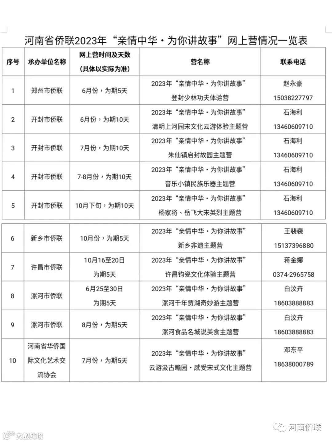 由于今年是新冠疫情后首次恢复办营,名额有限,2023“中国寻根之旅”夏令营河南营活动覆盖面还不能满足海外华裔青少年来豫寻根的热情。基于此,河南省侨联为海外华裔青少年学好中文、用好中文精心谋划设计了2023年“亲情中华·为你讲故事”河南特色网上营(见附件)。网上营活动同样内容丰富、精彩纷呈,饱含地域特色,竭诚欢迎广大海外华文学校、侨社团和华裔青少年积极参与,我们将优先推荐参与度、积极性较高的海外参营单位和优秀营员来豫参加2024年“中国寻根之旅”活动。