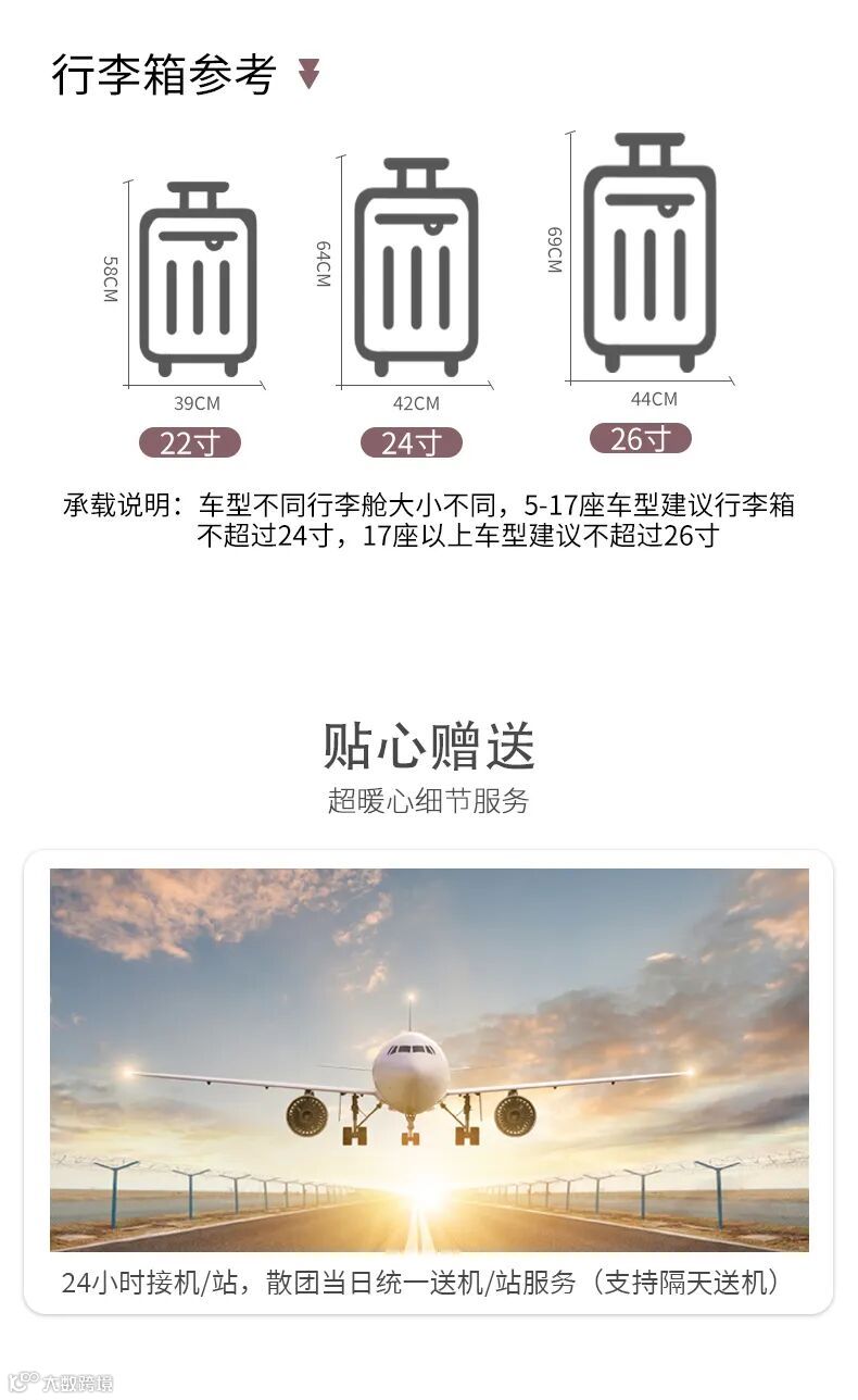 12、赠送24小时接飞机或火车服务(支持隔天送机)。