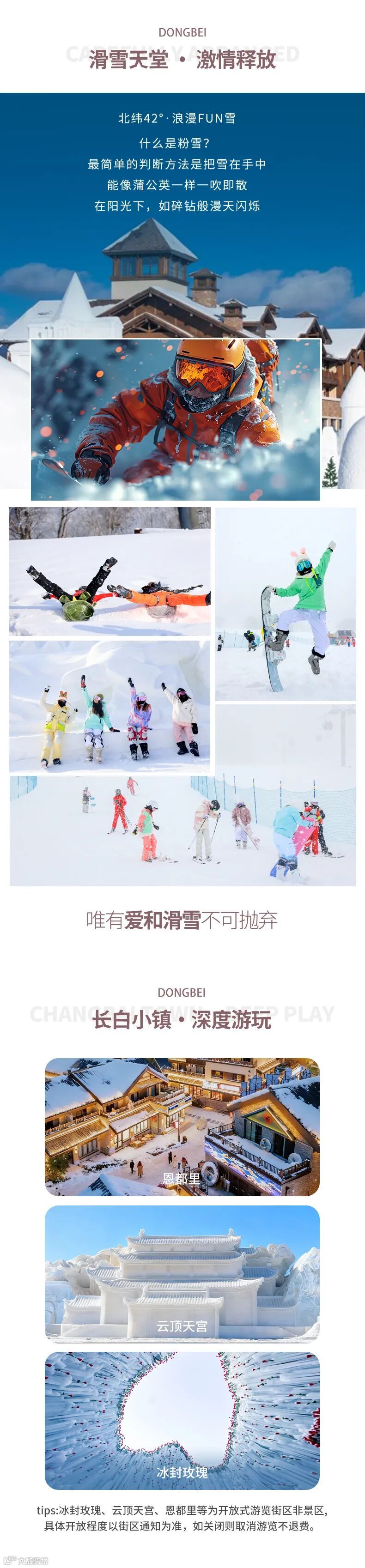3、 云顶天宫、冰封玫瑰为开放式游览街区非景区,具体开放程度以街区通知为准,如关闭则取消游览不退费
