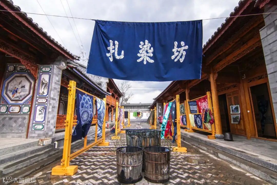 14:00 前往【周城村】,百年老院【古法扎染】,阿奶手把手教您将白布捆扎成蝴蝶、苍山纹样,浸入板蓝根发酵的靛蓝染缸,体验不一样的大理时光。