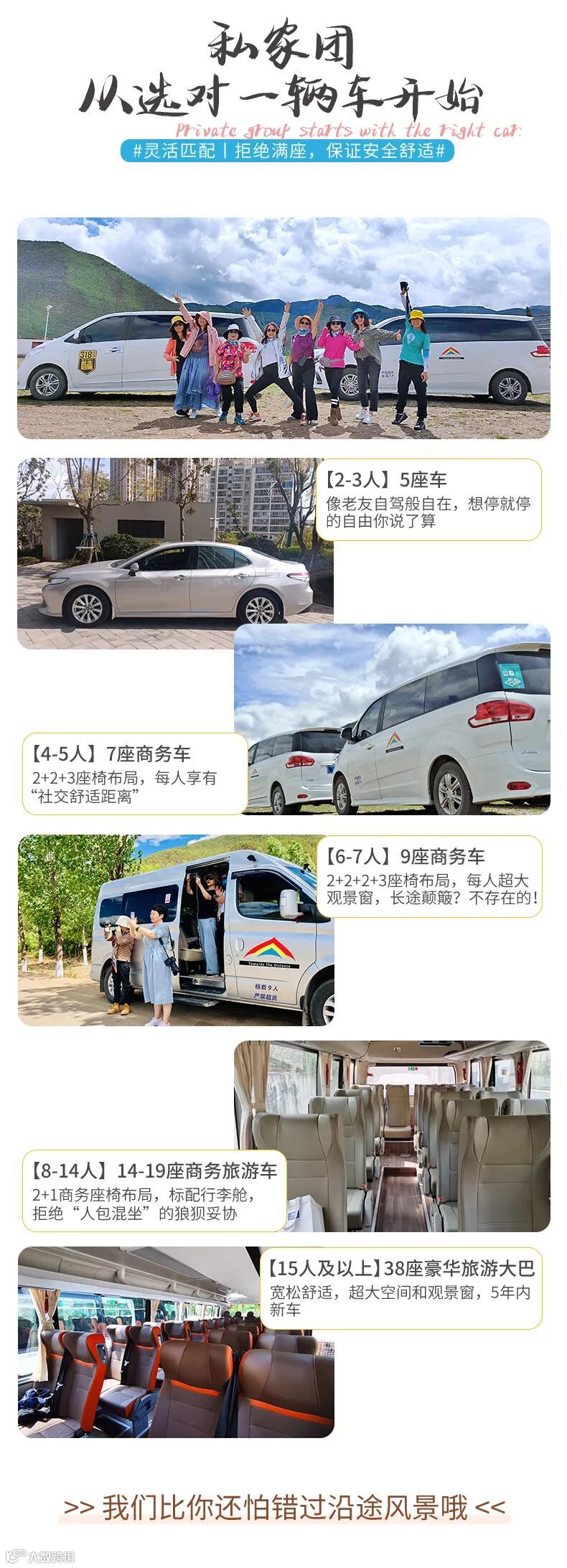 5、司导:2-7人司机兼管家(帮助大家购买门票,给团友游玩建议,无法全程陪同进入收费景区和提供专业讲解等服务,敬请谅解),8人及以上安排1名专职导游全程带队;