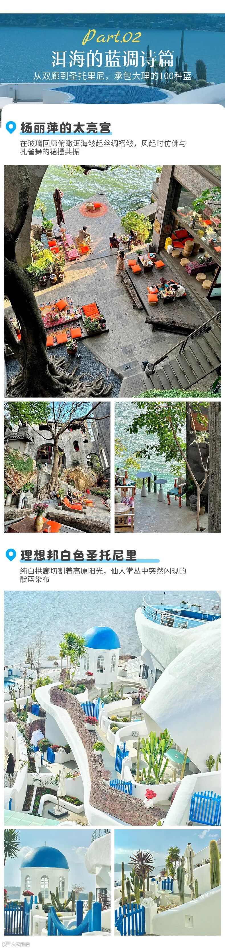 15:30 沿着【环海东路】一路打卡【挖色】【小普陀】,探访洱海“圣托里尼”【理想邦】,纯白拱门、蓝色泳池与三角梅交织的地中海风情,顶层花园可俯瞰洱海全景,逆光拍摄剪影超有氛围感!