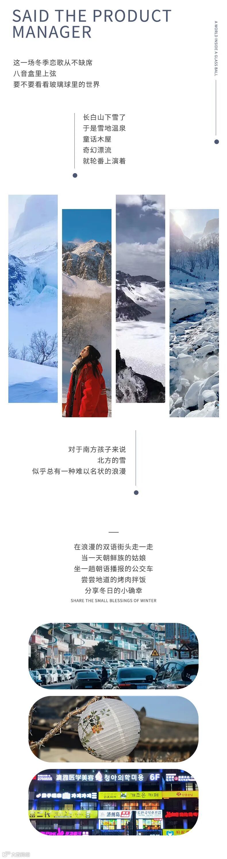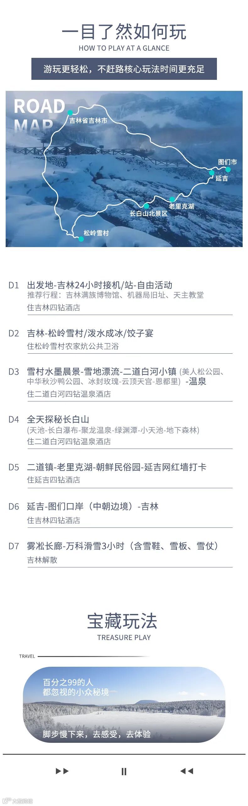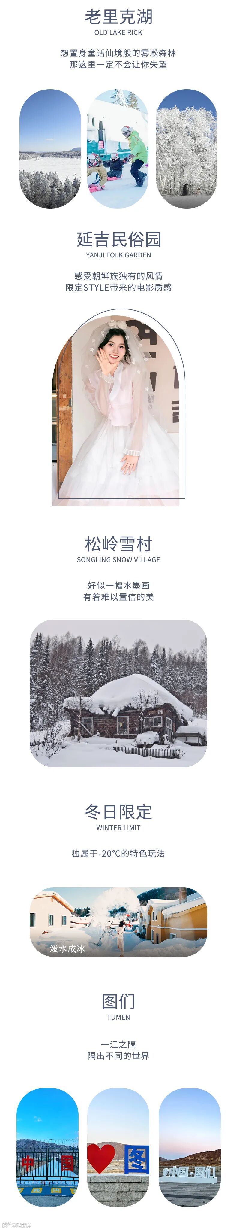 4、门票:吉林万科3小时滑雪包含雪鞋雪板雪杖使用、老里克湖门票、长白山门票+往返环保车+区间车+倒站车、朝鲜民俗园门票、雪地漂流门票、图们口岸门票;