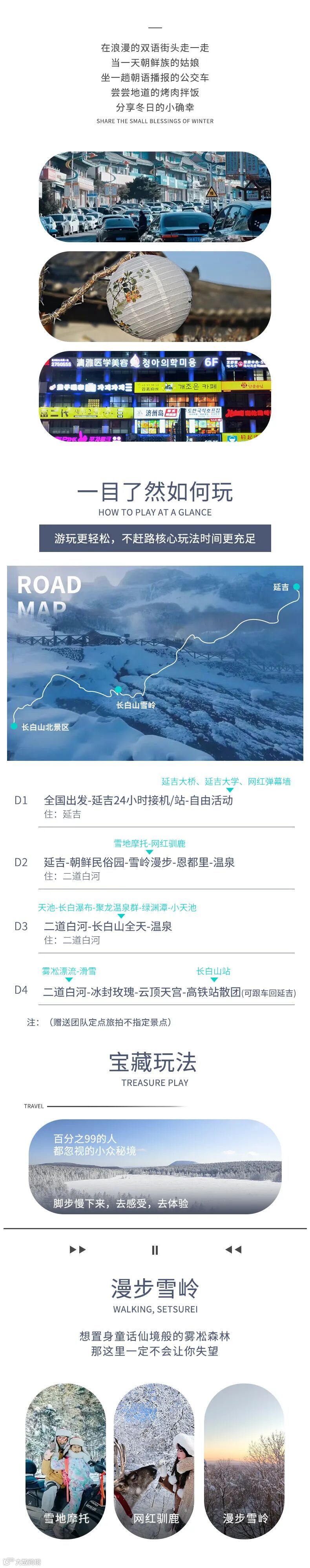 二道白河-雪地漂流-滑雪(30KM,车程约1小时)-冰封玫瑰-云顶天宫-二道白河高铁站(长白山站)(30KM,车程约1小时)(可跟车回延吉)