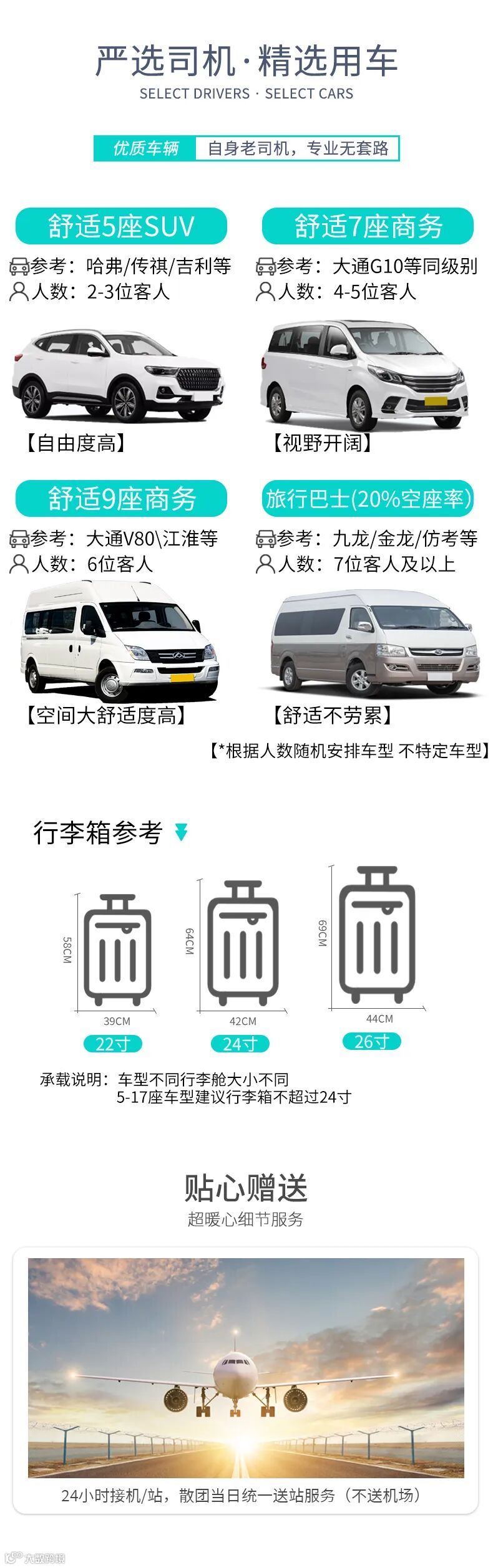 tips:用车仅以客人人数为标准,不包含司机、领队。