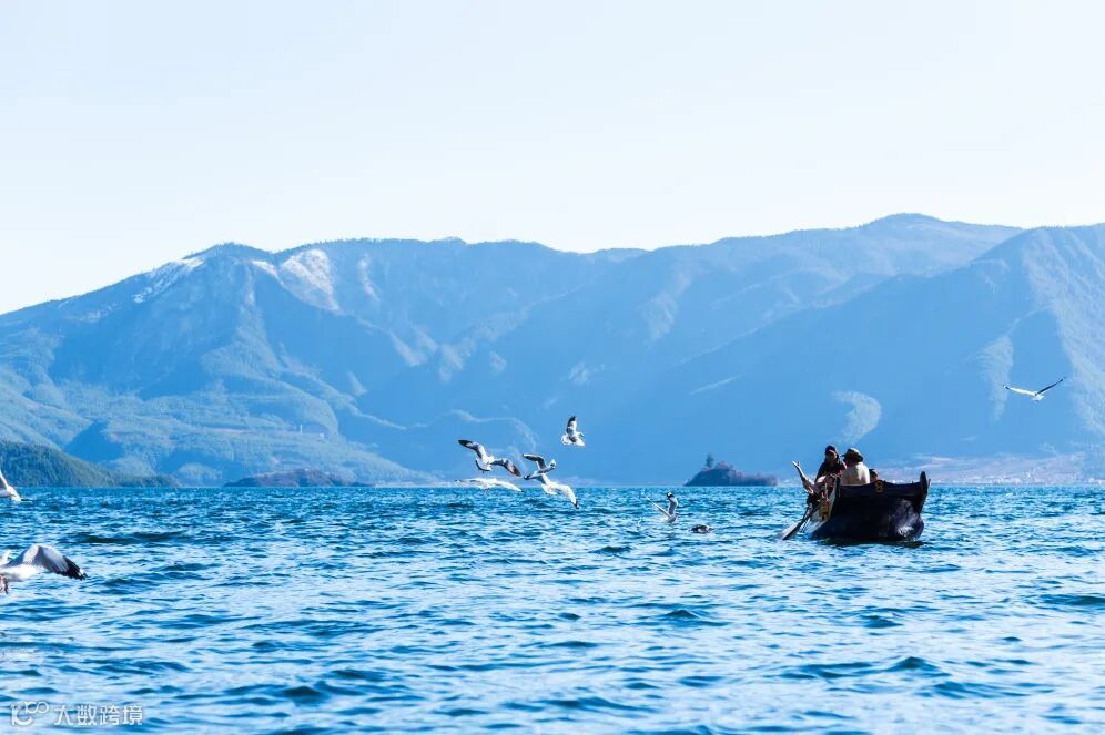 10:00 抵达泸沽湖边,在能见度达12米的清澈湖面上乘坐【猪槽船登岛】,这种小船曾是泸沽湖沿岸居民互相往来的交通工具,我们乘船游览泸沽湖,冬季还可以喂海口哦,