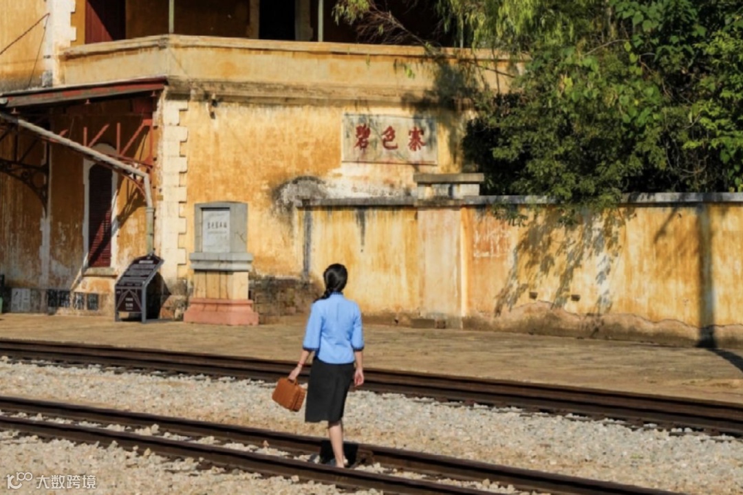 13:00到达【碧色寨·滇越铁路】,法式站房鹅黄墙面剥落如癣,【三面钟】锈针卡在1910。踩上米轨的瞬间,红土从枕木裂缝涌出,中国第一块【红土网球场】浮现而来。候车廊孔雀蓝木窗忽被撞开——百年未发的列车,正载着野象群冲进站长室的镜中。【芳华】拍摄的痕迹仍在其中,【滇越铁路】货运列车仍穿梭在【北回归线纪念碑】旁。