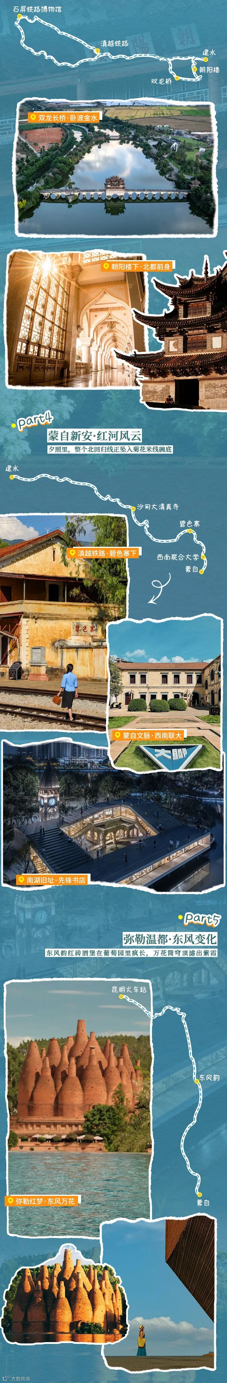 09:30 抵达【石屏古城】之中文庙泮池倒映的晚清卷棚顶下,豆腐作坊酸浆味蚀穿了科举榜单。跟着戴锡箔帽的老妪拐进袁嘉谷故居,她的布鞋底沾着万历年的朱砂印泥——当夕阳点燃异龙湖的苇荡,整座古城在豆渣香里微微发颤。古城旁的【石屏站】,法式黄墙的裂痕里渗出1910年的蒸汽。当窄轨列车碾过被藤蔓绞紧的铆钉,百年枕木突然在臀下震颤如蛇骨。窗外掠过甘蔗田与废弃锡矿——殖民者的野心,正被彝族农妇的背篓压成生锈的轨道。一场奇幻的【火车体验】也就在这个时候出发,让风吹过时间,向前出发。
