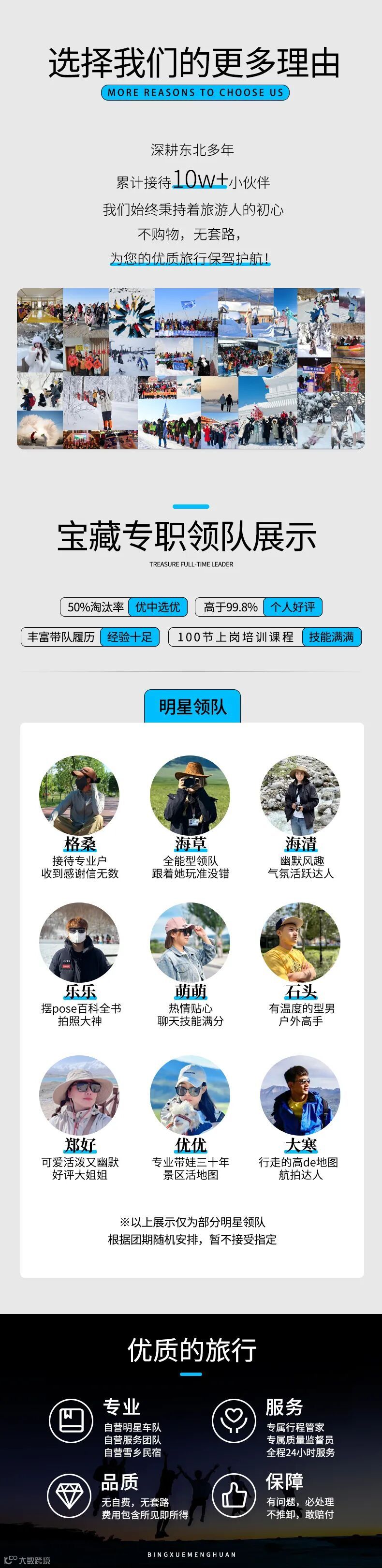 1、雾凇长廊的雾凇属于自然景观,不能保证每日都有,如当日无雾凇则取消此行程,不退费用。