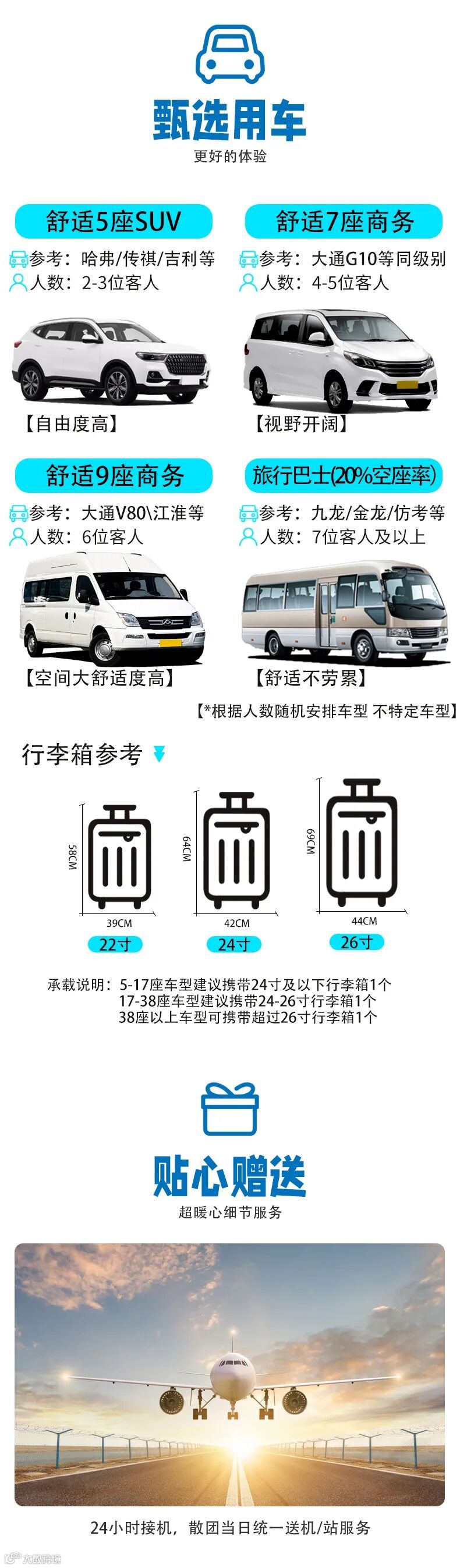 tips:用车仅以客人人数为标准,不包含司机、领队。