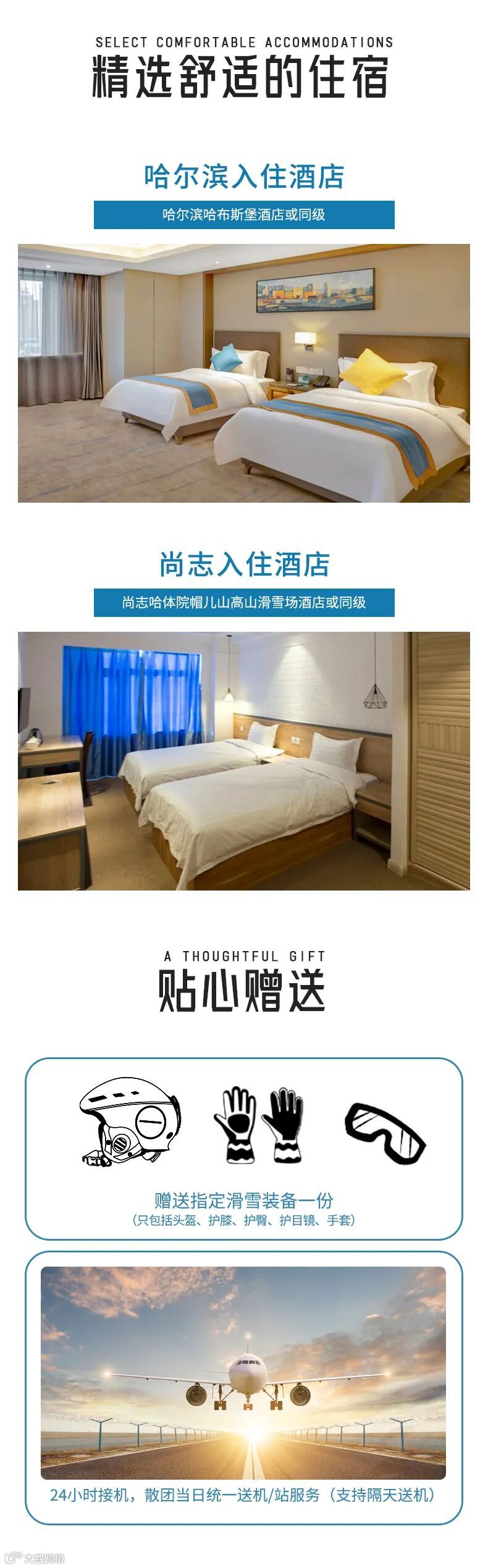 1、 赠送指定滑雪装备一份(只包括头盔、护膝、护臀、护目镜、手套);