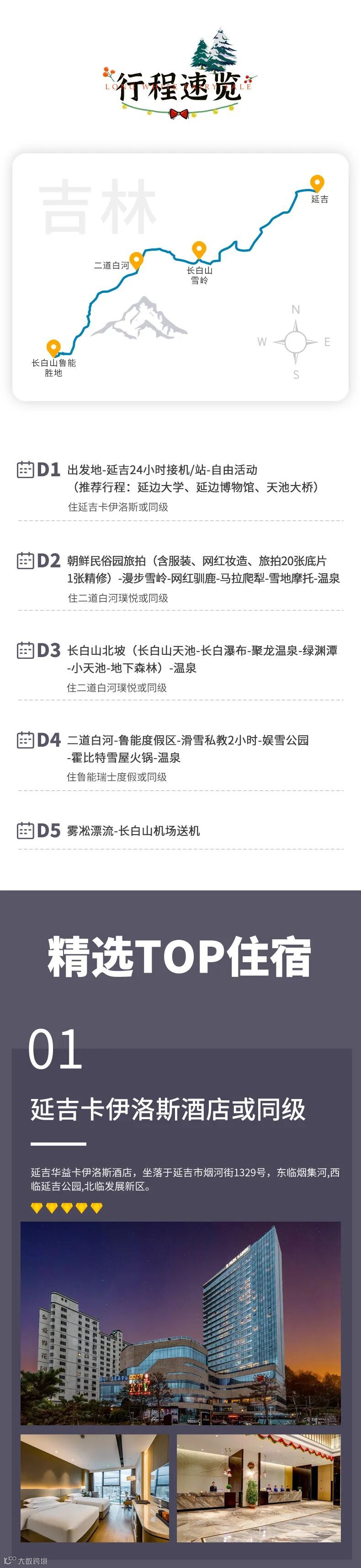 延吉五钻卡伊洛斯酒店1晚或同级;