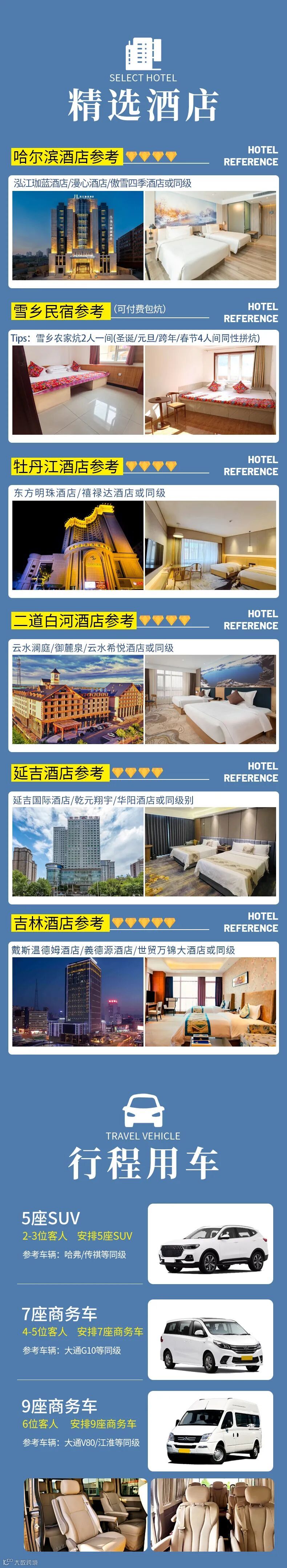 备注:钻级标准参考携程钻级标准,东北经济发展较差,酒店已经是我们精心挑选的,但是和大城市同级别酒店相比各方面略差一些,敬请您谅解;