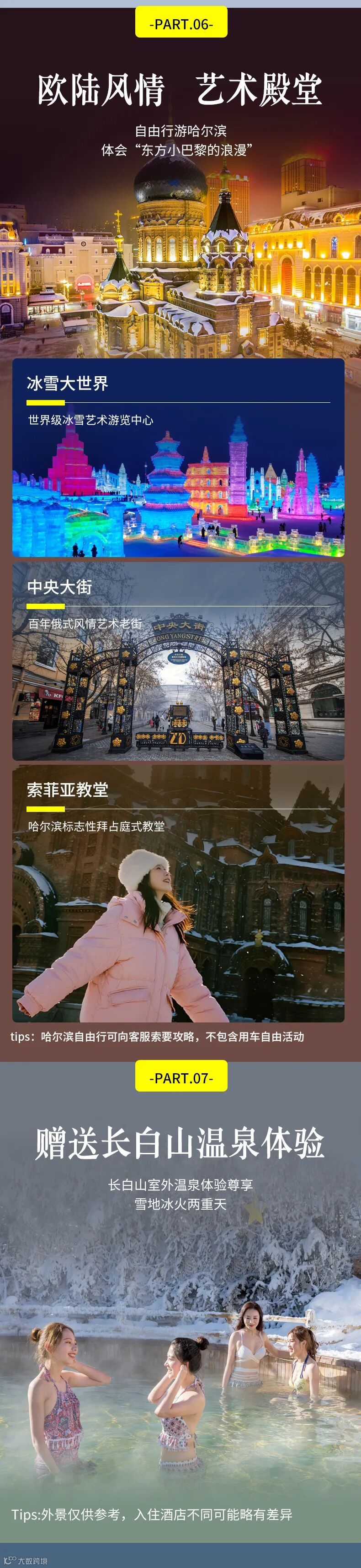 平价团期:3晚酒店 450元/人、1晚雪乡农家炕为4人间:1人包炕补900元,2人包炕补600元,3人包炕补300元,4人包炕无需补差价。