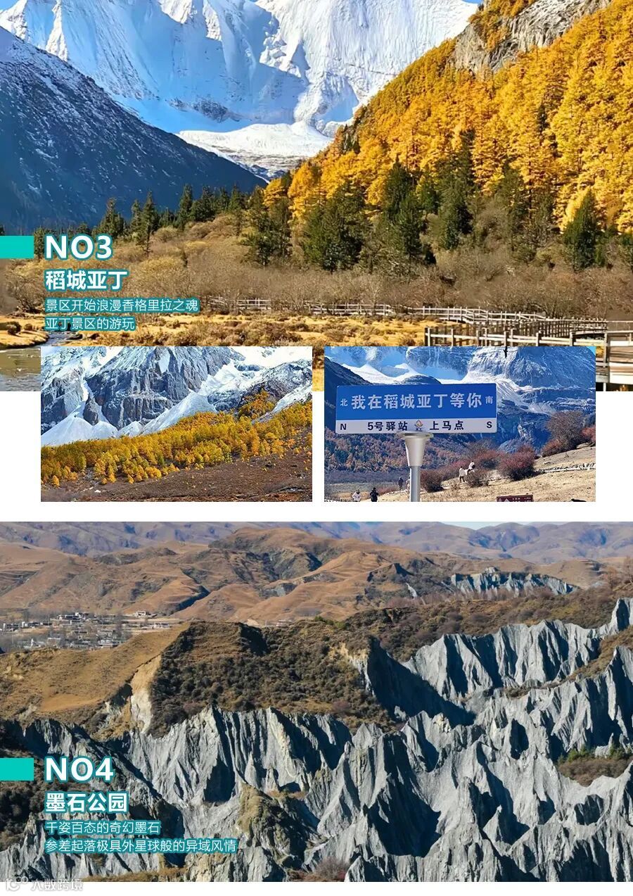 (3)出景区乘坐观光车时有2个上车点,一到亚丁村,一到景区门口,注意观察,不要坐错。