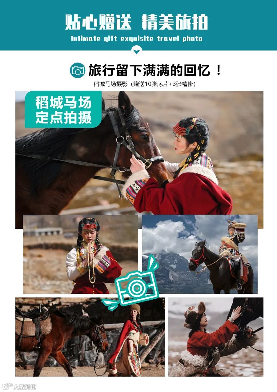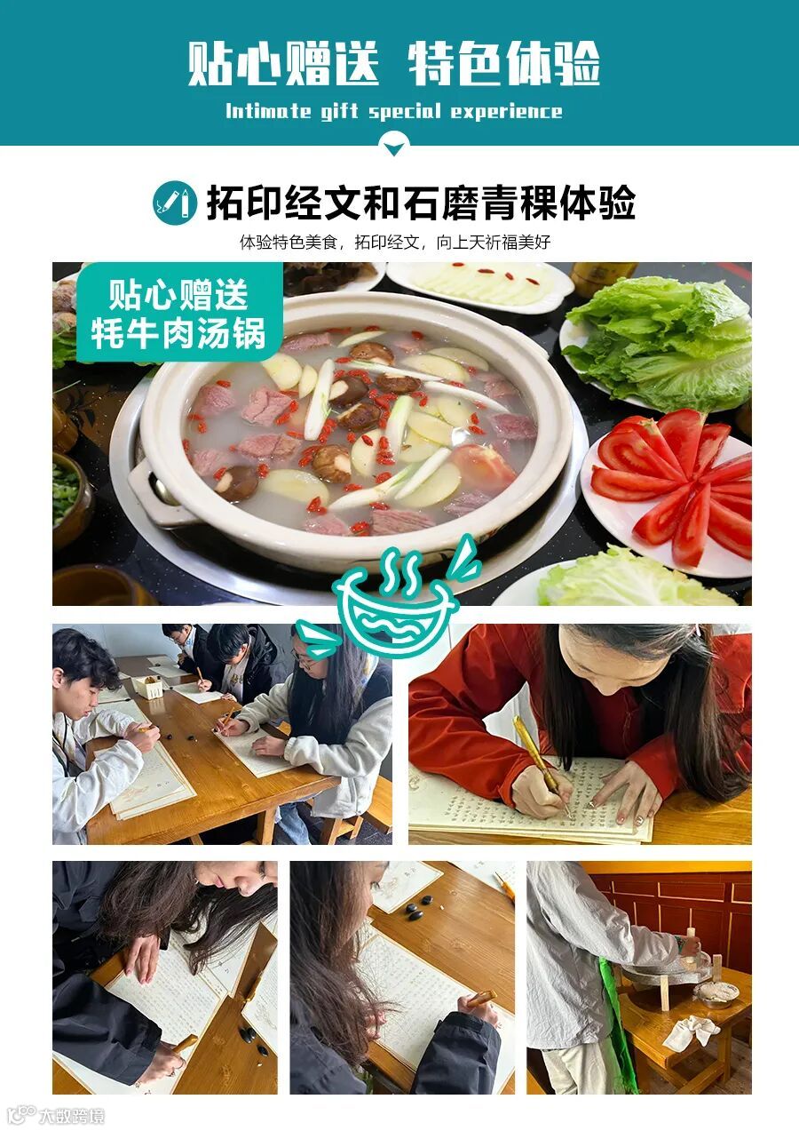 5、赠送:2人同时报名赠送24H接机(双流机场)/站一次、氧气瓶每人1个、旅行三宝每人1套、牦牛肉汤锅一次、稻城马场摄影,赠送拓印经文和石磨青稞体验