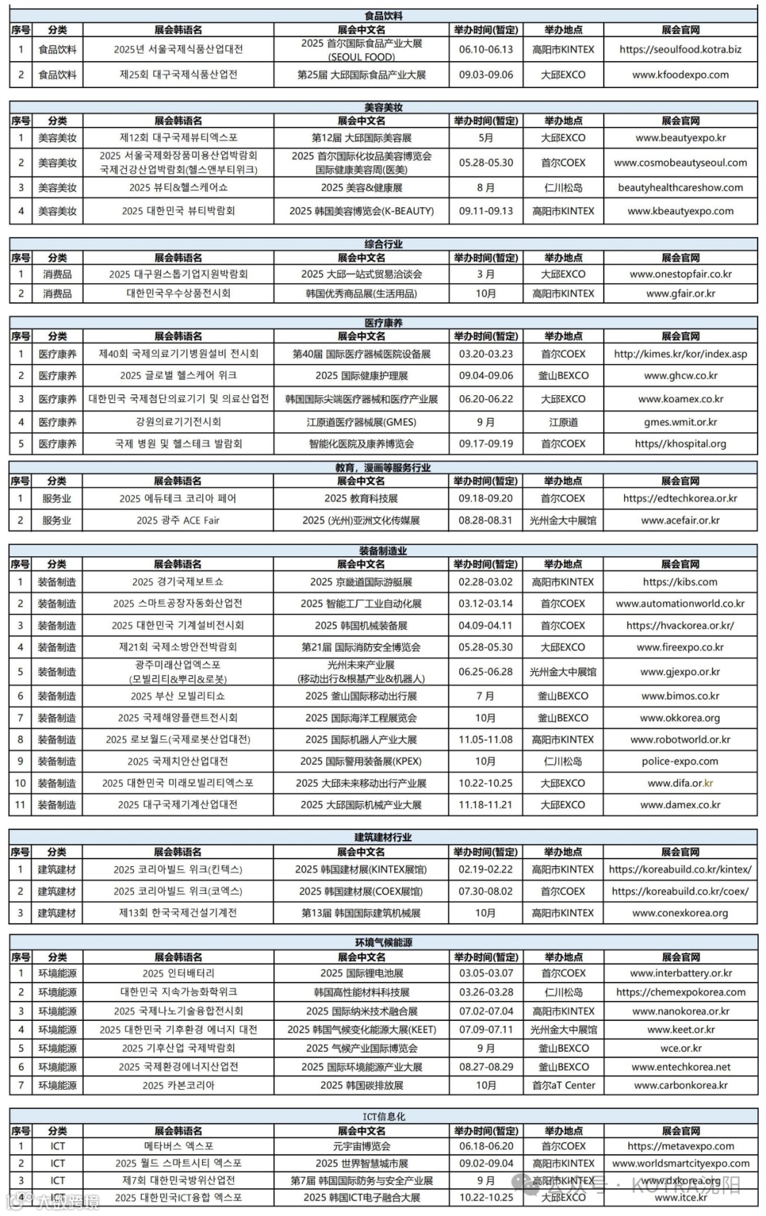 2025年大韩贸易投资振兴公社将一如既往开展一系列活动,其中,杭州贸易馆将大力支持的韩国展会目录如下。