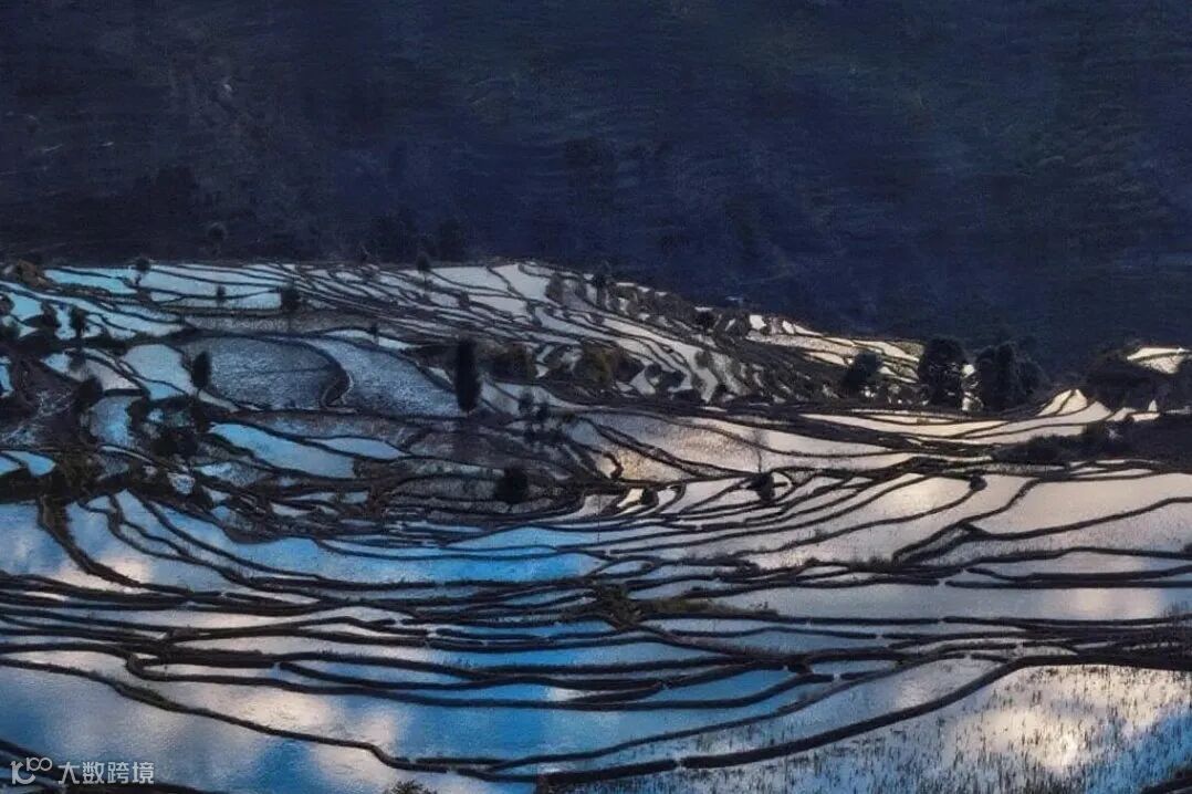 09:00 前往【爱春·蓝梯田】,水镜将蓝靛草的基因链熔化成液态宝石,哈尼少女的银饰掠过田埂,划开一道靛青伤口——那是天神遗落的丝绸衬里,正随云影流速缝合群山。