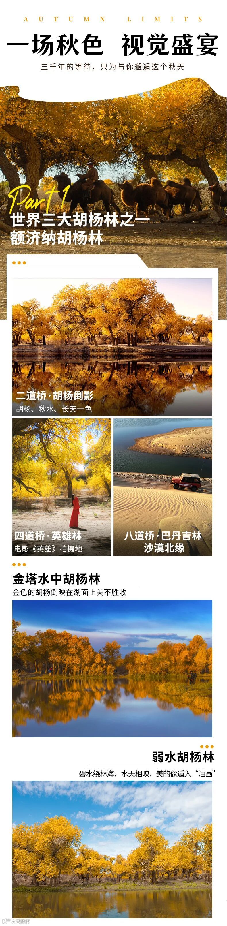 2.我们为各位购买的是额济纳胡杨林通票,包含景点:陶来林、恋影林、二道桥塔王府、倒影林、三道桥红柳海观景平台、四道桥英雄林、五道桥胡杨民俗风情园、七道桥梦境林、太阳湖、八道桥巴丹吉林沙漠北缘,大家在自由活动期间可以随意畅玩!