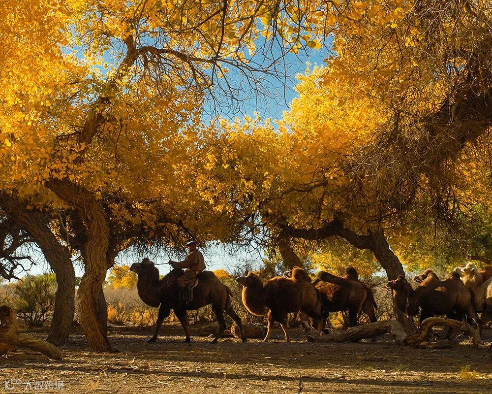 09:00出发前往【额济纳胡杨林】(全天畅玩),这里的美景因张艺谋《英雄》而名声大起。从二道桥到八道桥,这里有看不到尽头的胡杨林、红柳海,瑟瑟秋风中的胡杨林早已变成一片金黄,,金秋时节漫步辉煌的金秋胡杨林,捕捉千姿百态的胡杨美景。保护区内的一道桥至八道桥,分布着不同的胡杨景观,是摄影爱好者的天堂。八道桥的巴丹吉林沙漠北缘,沧桑醉人心魄。你也可以找寻一树三叶的神奇景象:“幼树叶如针似柳眉、壮龄树叶酷似白桦、老年树叶椭圆。”