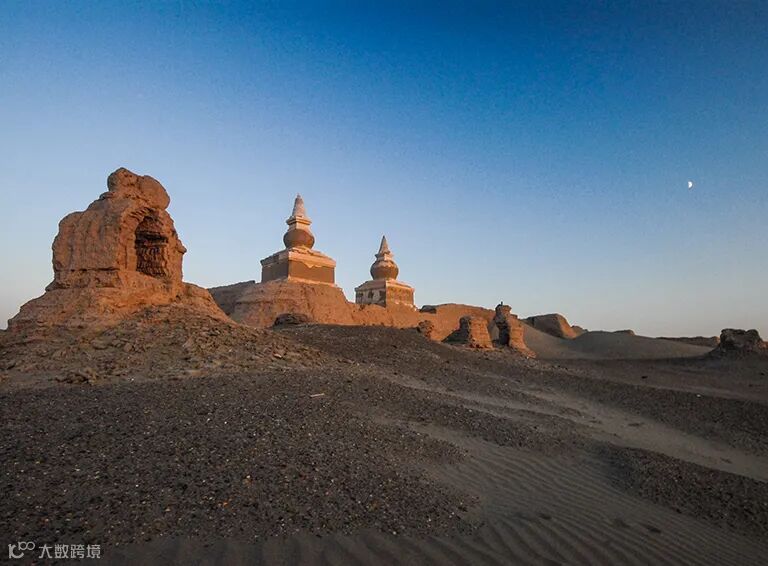 15:00抵达【弱水金沙湾】,【黑水城】极好的还原了丝绸之路上最大的古城遗址风貌,和连绵起伏的沙漠一起构成大漠戈壁上的一颗明珠,城墙上的佛塔,城墙外的清真寺仿佛在向我们诉说往日的繁华。