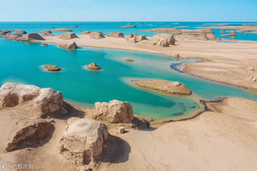 13 : 30随后赴【水上雅丹】,这是国内仅有的水上雅丹地貌群,由于塔达木盆地的地壳运动而让青海湖等地的湖水通过地下流入了这雅丹境内,才形成了我们眼前所见到的独特的水上雅丹地貌。湛蓝水面上的雅丹地貌一群群簇拥在一起,宛如万国舰队一般漂浮在水面上,壮观无比。