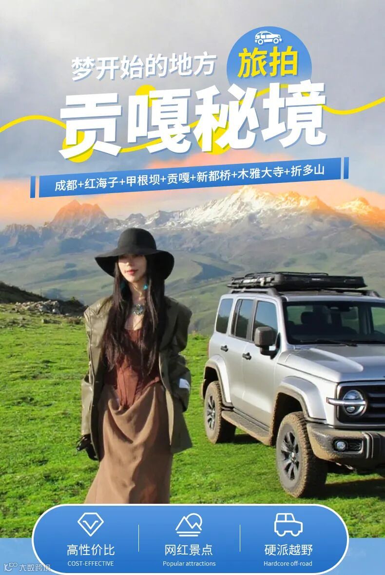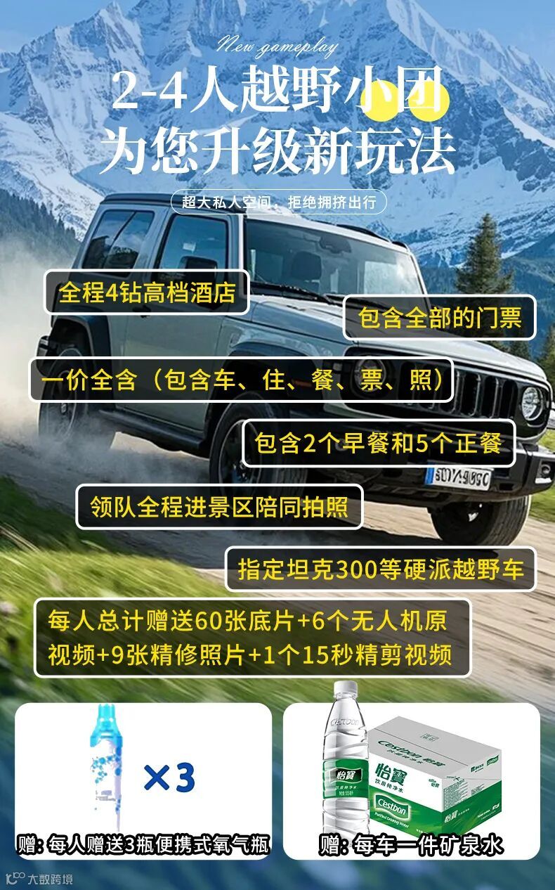1、交通:成都出发往返交通费用(一人一座),每车不超过4位游客(坦克300、BJ40、捷途旅行者等硬派越野车);